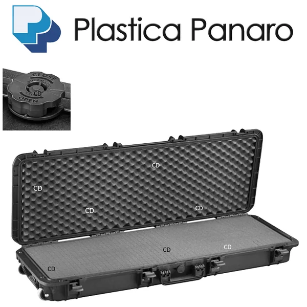MALLETTE PLASTICA PANARO WATERPROOF MAX 1100S :*Garantie 5 ans.-Mallette MAX Plastica Panaro en polypropylène de transport résistant aux chocs et à l’eau.-Mallette conçue pour le transport en conditions difficiles d’une arme longue, de munitions, d’optique ou d’optronique-Waterproof : norme IP67, supporte l’immersion totale à 1m pendant 30 min (certificat disponible).-Joint torique intégré au couvercle.-Valve automatique de décompression en cas de transport en altitude.-Rembourrage mousse prédécoupée en cubes pour s’adapter à votre arme.-Poignée articulée rabattable.-Charnière polymère insensible au climat.*Dimensions extérieures : 1177 x 450 x 158mm (46.34 x 17.72 x H 6.22 inch).*Dimensions intérieures : 1100 x 370 x 140mm (43.30 x 14.57 x H 5.51 inch).-Hauteur Boitier/couvercle : 45+95mm (1.77+3.74 inch).-Résiste aux températures extrêmes : -30/+90°C (-22/+194°F).