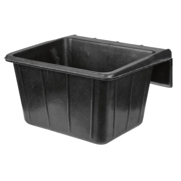 Mangeoire à accrocher. Matière : caoutchouc. Contenance : 25L. Couleur : noir.