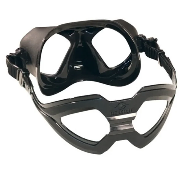 Le masque Shark de Beuchat se démarque par sa conception visionnaire, alliant un volume d’air minimal à un champ de vision exceptionnel.