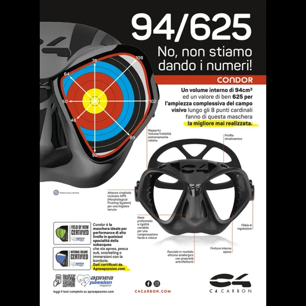Masque chasse sous marine C4 Condor anti buée – Silver