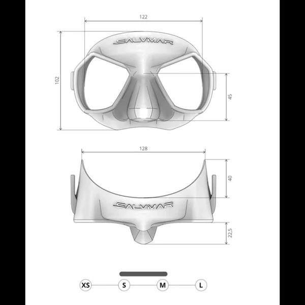 Masque de chasse et apnée au volume interne très réduit, ergonomique et doté de verres haute visibilité.