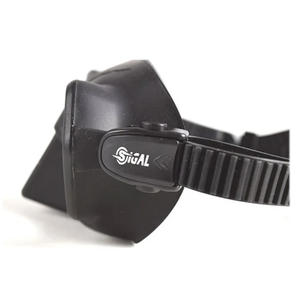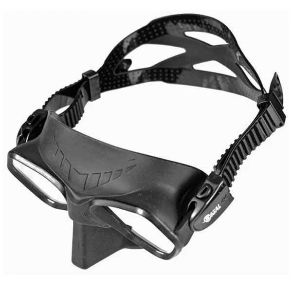 La masque Minima est réalisé en silicone anallergique, a un volume ultra réduit, un nez avec une prise antidérapante, une sangle large à l’arrière de la tête et une attache avec micro-réglage, des lentilles en verre trempé ultra résistant d’une épaisseur augmentée à 3,2 mm.