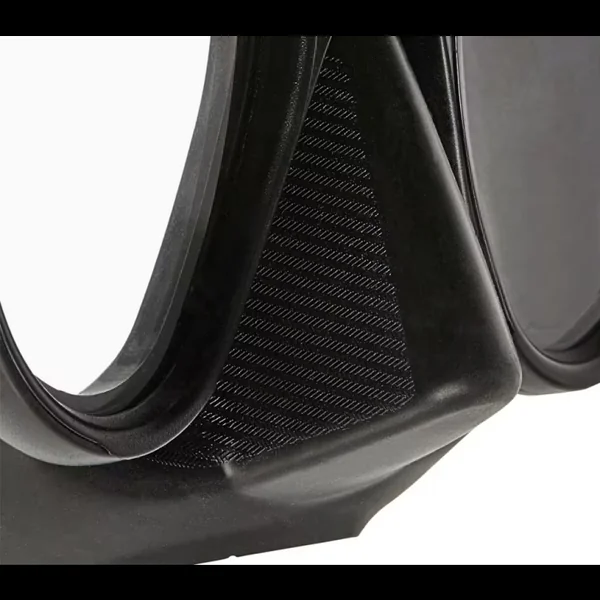 Masque Omer Alien Action Masque à petit volume interne et large champ de vision, dont les attaches de boucles sont positionnées directement sur la jupe en silicone souple, fabriquée au Japon suivant les spécifications d’Omersub -en position reculée pour un meilleur hydrodynamisme.