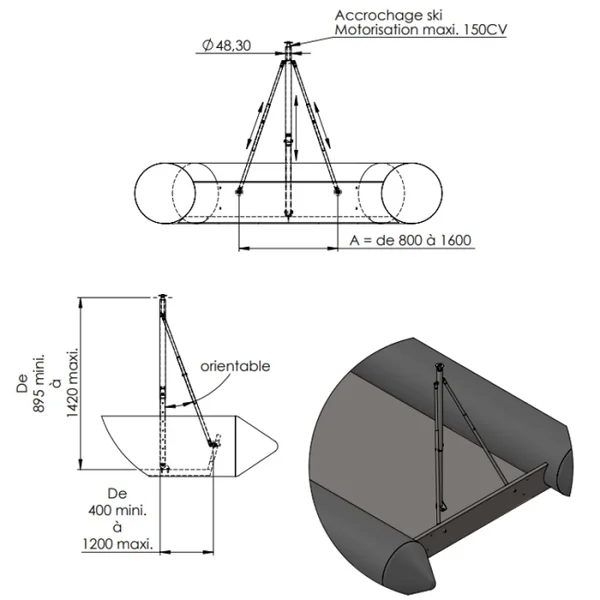 Ce mât est conçu pour s’adapter à tous types de bateaux pour tracter ou faire de l’initiation au ski nautique ou wake board.