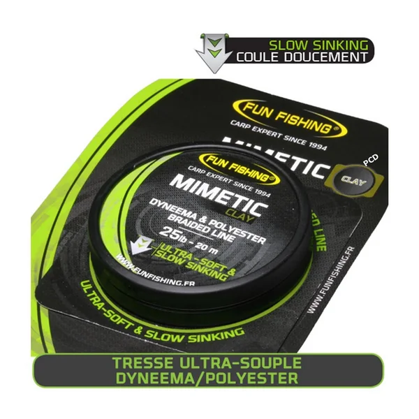 Cette tresse Mimetic ultra souple de marque Fun Fishing, bénéficie d’un tressage en Dyneema & Polyester qui lui permet de couler doucement.