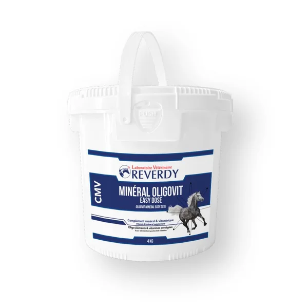 Reverdy Minéral Oligovit Easy Dose est un complément minéral et vitaminique (CMV) pour chevaux, poulains, poulinières et étalons apportant des oligo-éléments très assimilables et des vitamines protégées. Se présente sous forme de gros granulés.