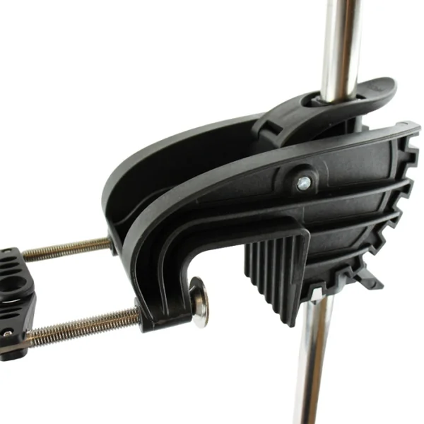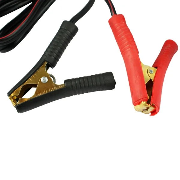 Ce moteur de bateau électrique est équipé de pinces dites crocodiles pour la connexion du moteur à la batterie.