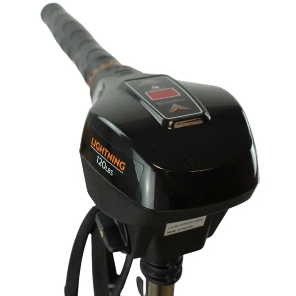 Le moteur Thorus Reaper 120 est équipé d’une tête moteur qui est pliable à 90° vers le bas. Cela permet de ranger facilement le moteur dans votre bateau ou dans le coffre de votre véhicule.