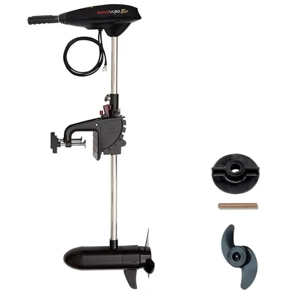 Rhino VX50 ECO : puissant, économique, abordable! Avec ce moteur VX, nous alignons un sérieux concurrent sur le marché des moteurs électriques de forte puissance, naturellement avec la qualité Rhino et pour les budgets serrés. Ce moteur se distingue par ailleurs par une consommation électrique optimisée, rallongeant naturellement l’autonomie d’une batterie de capacité identique. La barre comporte 5 vitesses avant et 2 vitesses arrière. Un bouton déverrouille la bascule pour sortir le moteur de l’eau la profondeur ainsi que la résistance de pivotement sont réglables sans crans. La prise en main de ce moteur est particulièrement simple, confortable et sûre, un partenaire fiable pour des milliers de pêcheurs.