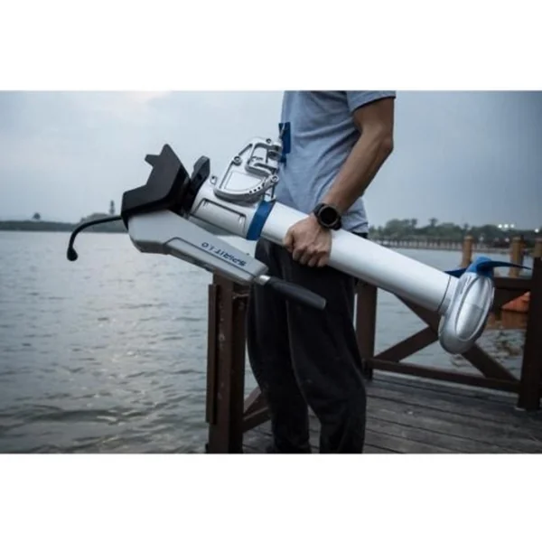 Le Spirit pèse environ 8Kg permettant a celui ci d’étre transporté facilement et mis sur une barque ou une annexe avec une grande facilité.