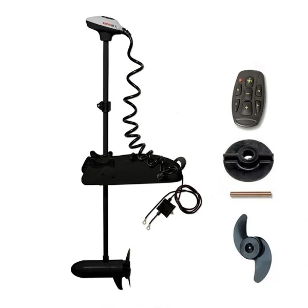 Moteur hors-bord électrique monté sur la proue avec une poussée de 65 lb à une tension de 12 V. Max 520W.