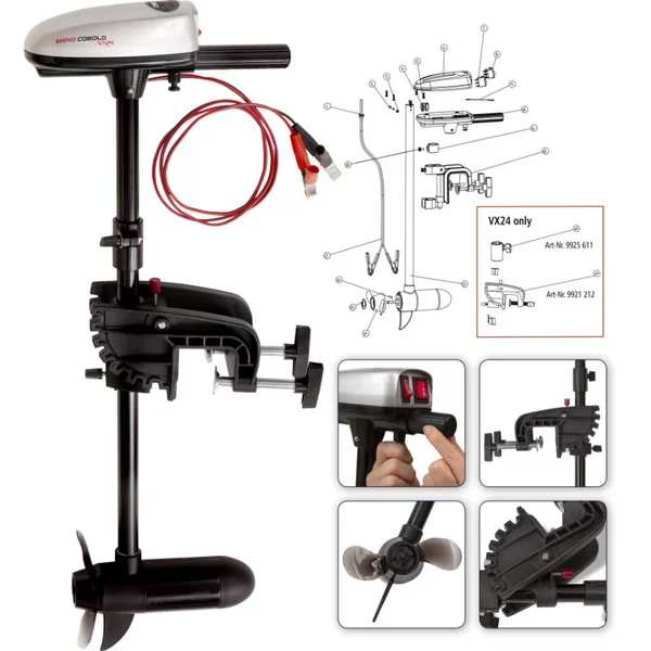 Rhino vous propose le moteur électrique VX 24 Cobold, le grand frère du VX 18. Il est conçu avec la même volonté de taille réduite, d’une bonne maniabilité et d’une puissance de poussée modéré qui atteint les 24lb, tout ces éléments en font une solution plus qu’adaptée pour votre float tube, votre canoë ou votre bateau gonflable.