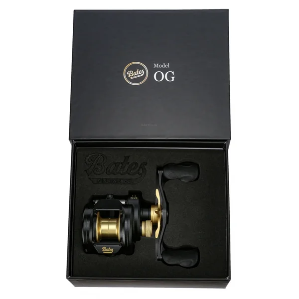 Le cadre entièrement usiné de ce moulinet, comme pour le reste de la gamme de moulinets Bates, enveloppe une mécanique de précision. Avec une taille de 100, le profil rond de l’O.G. dissimule des mécanismes et des engrenages proches du modèle populaire Hundo. Spécialement pensé pour les amateurs de pêche aux swimbaits et les pêcheurs visant des records avec du matériel léger, l’O.G. est équipé d’engrenages en laiton. Toutefois, il vaut mieux éviter de s’attaquer aux thons et autres grands poissons de sport avec ce modèle, même s’il est aussi robuste qu’un moulinet de grand-père, car il a ses limites.