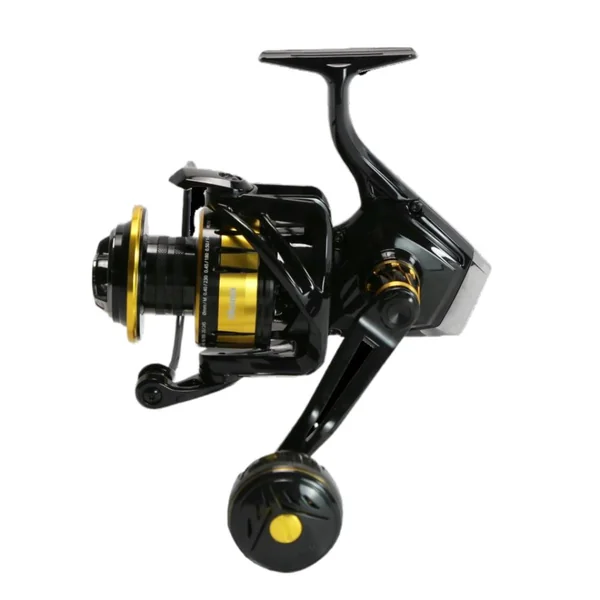 Chaque détail est pensé pour la pêche en mer forte : manivelle vissée en aluminium, poignée ronde ergonomique, rotor Cyclonic Flow™ pour une meilleure ventilation, et bobine large capacité idéale pour les pêches longues distances ou verticales en profondeur.