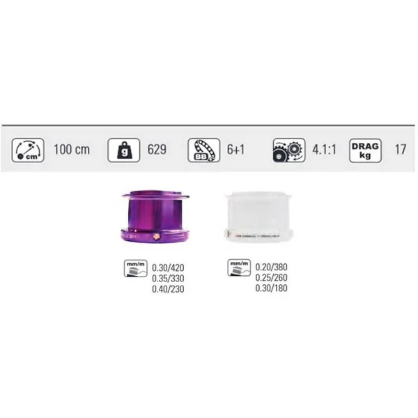 | Capacité en m/mm 420/0.30 Récupération en cm 100 Poids en g 629 Puissance maxi du frein 17 |