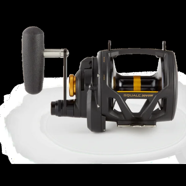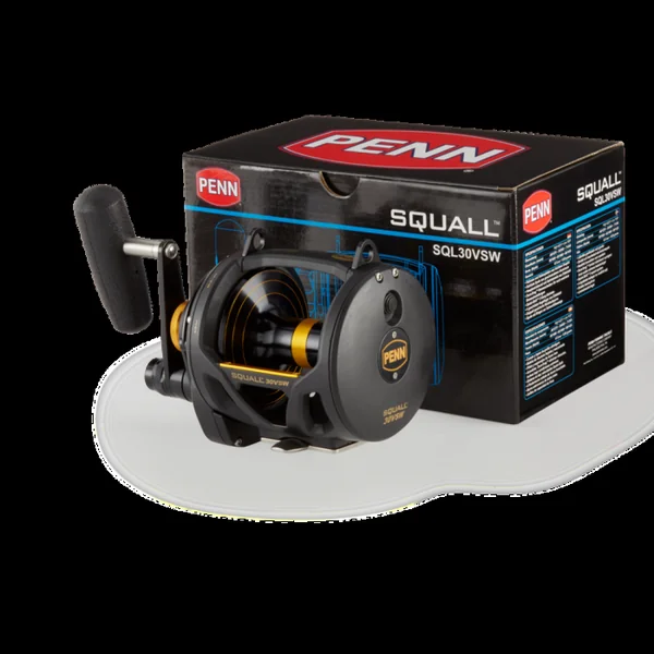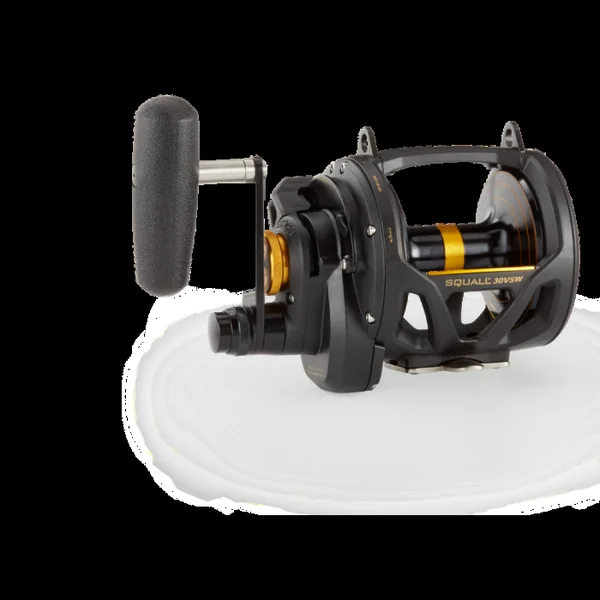 Moulinet Traîne Penn Squall Lever Drag 2 Speed 30VSW Le Penn Squall bénéficiant de la même conception que la fameuse série des moulinets International V, le Squall Lever Drag 2 Speed est un moulinet léger et très moderne équipé d’un levier de frein très robuste. Il est équipé du système Quick Shift qui permet de passer rapidement d’un ratio élevé à un ratio plus faible. Il est doté d’un frein puissant Dura-Drag, d’une bobine en aluminium et d’un anti-retour permettant d’optimiser les ferrages. Ces moulinets possèdent aussi une fixation qui se règle très facilement et qui permet d’accrocher le moulinet à un harnais.