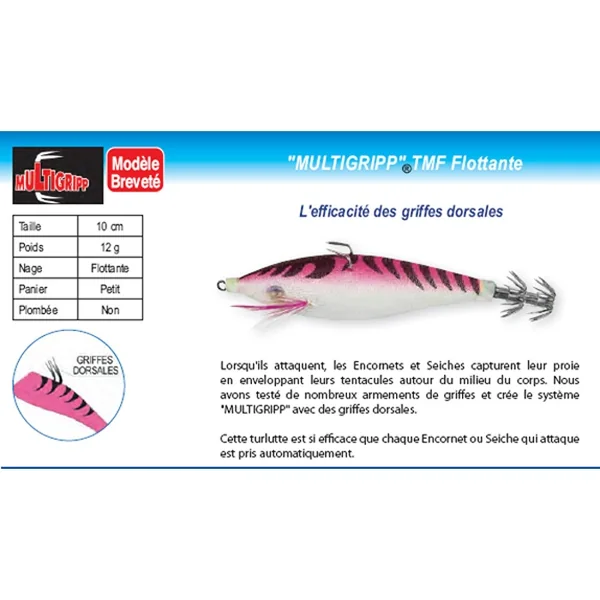 Multigripp Semi Flottante 100 mm Lorsqu’ils attaquent, les Encornets et Seiches capturent leur proie en enveloppant leurs tentacules autour du milieu du corps.