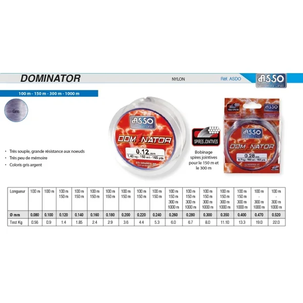 Vendu par 1 bobine de 1000 m Caractéristiques Nylon Asso Dominator 1000 m