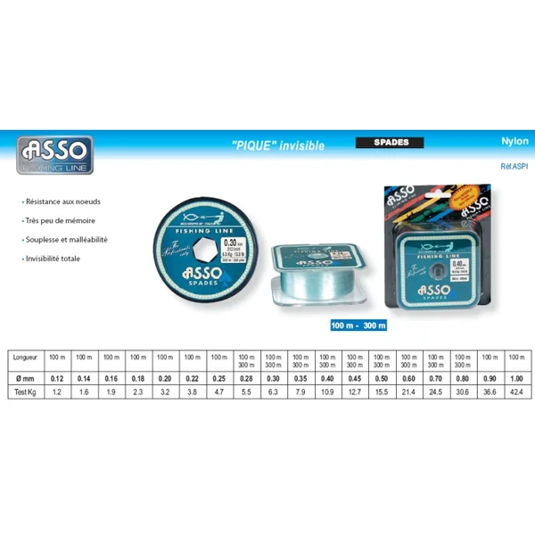 70 et 80/100 vendus par 1 blister de 300 m Caractéristiques Nylon Asso Pique Invisible 300 m