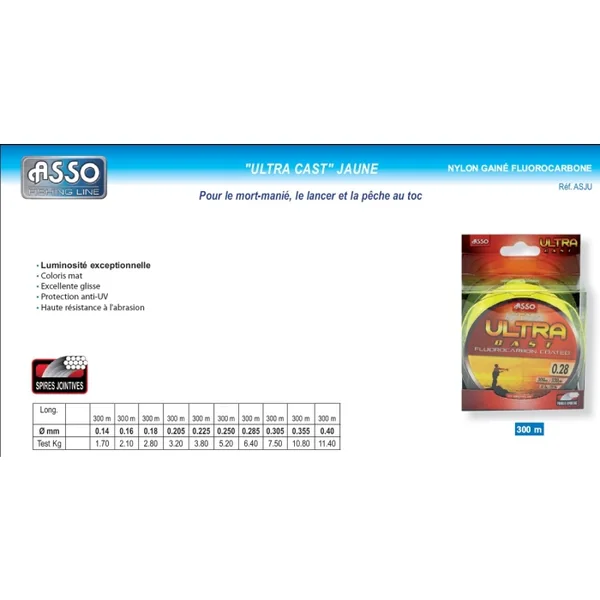 • Haute résistance à l’abrasion Avis Nylon Asso Ultra Cast Jaune Mat 300 m 18/100 Écrivez votre avis