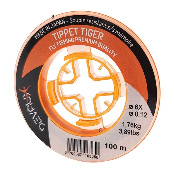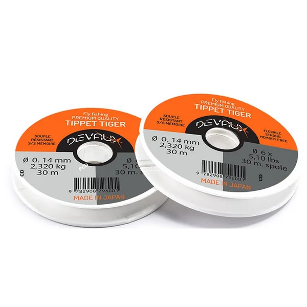 Le nylon Tippet Tiger, de marque Devaux, est très polyvalent et conviendra parfaitement pour toutes vos pêches en rivière et en réservoir, il est notamment très apprécié dans le domaine de la compétition.
