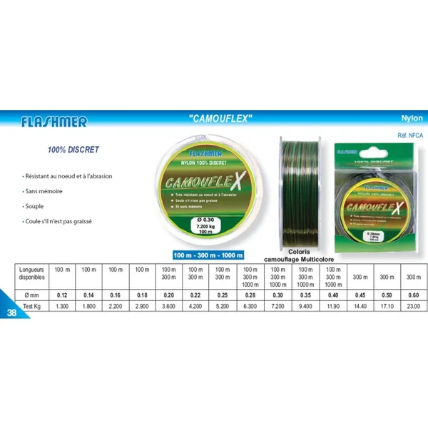 Vendu par 1 bobine de 1000 m Caractéristiques Nylon Flashmer Camouflex 1000 m