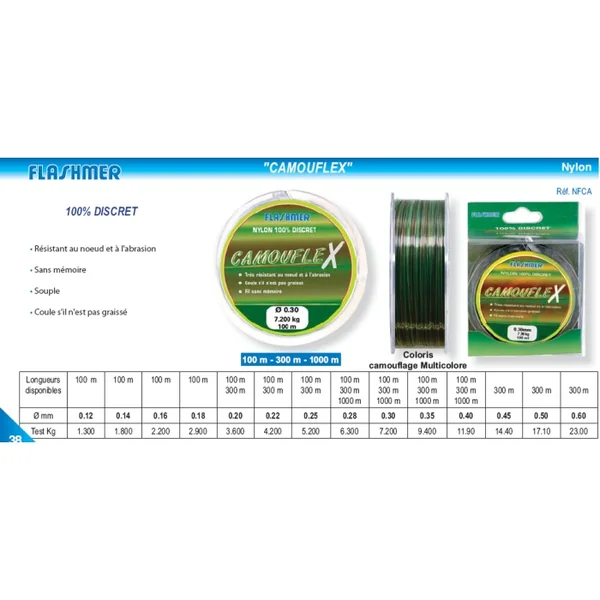 • Coule s’il n’est pas graissé Avis Nylon Flashmer Camouflex 300 m 45/100 Écrivez votre avis