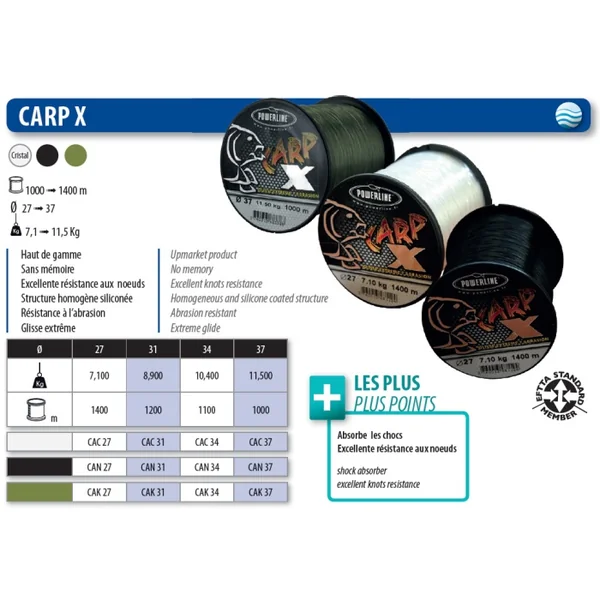 Excellente résistance aux nœuds Avis Nylon Powerline Carp X Noir 1100 m 34/100 – 10,4 kg Écrivez votre avis