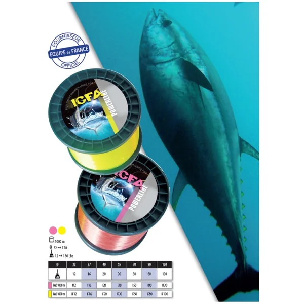 Nylon Powerline IGFA rose 1000 m Nylon aux normes IGFA pécialement calibré et étudié pour les pêches sportives, ce monofilament de couleur rouge, rose ou jaune, offre une excellente résistance à l’abrasion et aux noeuds.
