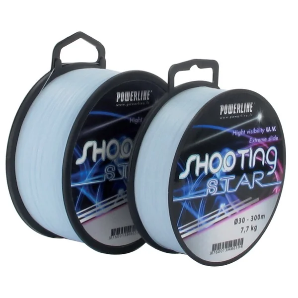 Nylon Powerline Shooting Star 300 m 30/100 – 7,7 kg Nylon idéal pour les pêches nocturnes grâce à une vision optimale de nuit avec une lampe U.V.