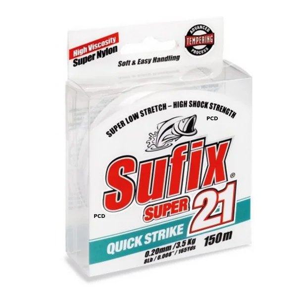 Une longue chaîne de molécules associée au contrôle avancé de la température pendant l’extrusion procurer au Nylon Sufix Super 21 une excellente sensibilité, et une forte résistance aux chocs et aux noeuds.