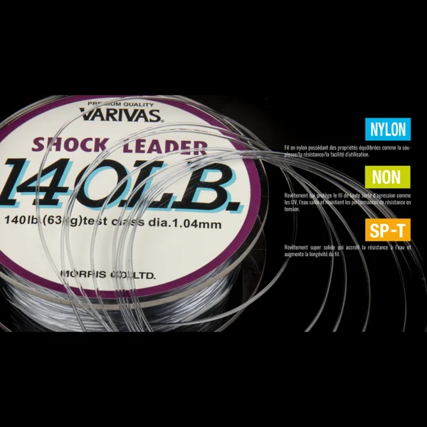 Nylon Varivas Shock Leader 50 m Le SHOCK LEADER VARIVAS est spécialement conçu pour confectionner des bas de lignes ultra solides, souples et discrets.