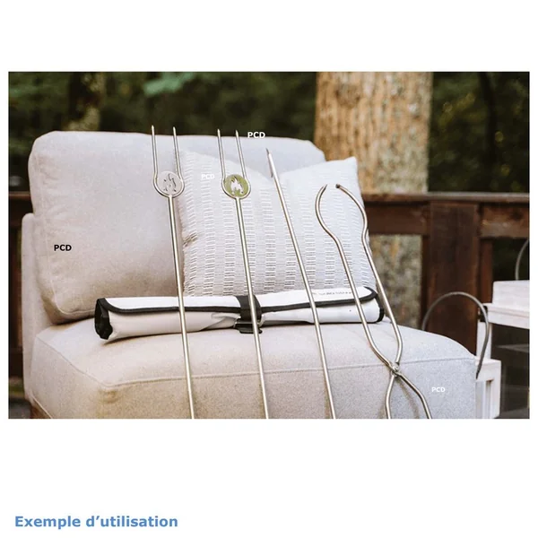 Ce set comprend quatre brochettes à pique, une pince et un poker. Conçu en acier inoxydable, ces accessoires sont robustes et conçu pour durer à vie.