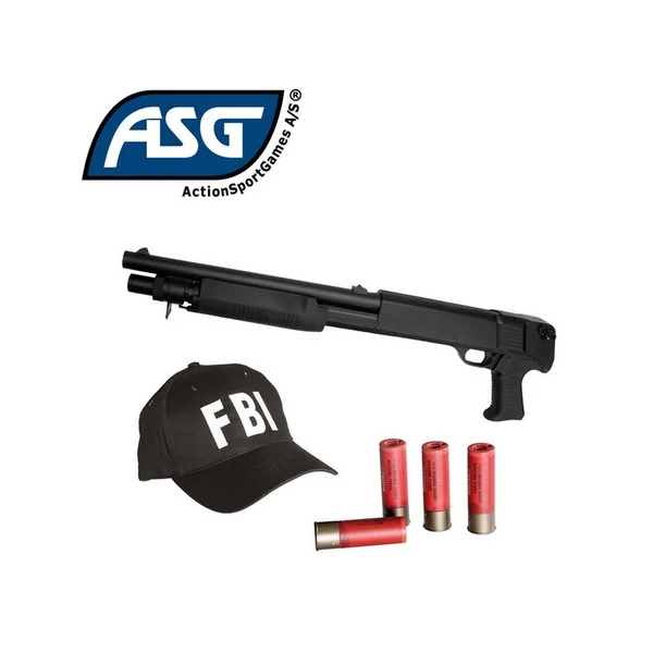 PACK FRANCHI SAS 12 ASG : Caractéristiques : *Pack comprenant 1 fusil à pompe 6mm à ressort FRANCHI SAS + 1 pack de 6 douilles 30 billes + 1 casquette FBI. -Fusil à pompe Franchi 3 burst. -Fonctionnement par ressort. -30 coups. -Calibre 6mm airsoft. -Poids 1200g, -Puissance : 0.7 joules. *Prix de vente conseillé en 2016 : 109.90€. *PISTOLET SOUMISE A LA LEGISLATION : CARTE D’IDENTITE OBLIGATOIRE.