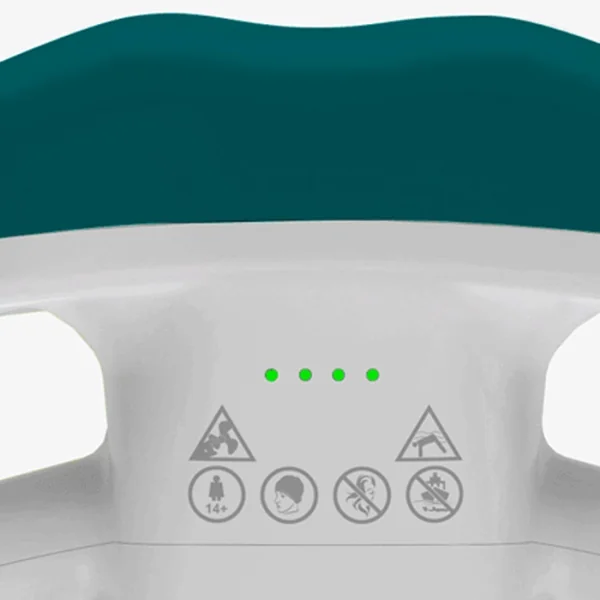Pendant son utilisation, le Seascooter affiche en temps réel le niveau de batterie restant grâce à des LED. Il existe quatre combinaisons lumineuses : lorsque les quatre LED vertes sont allumées, cela indique une charge maximale ou élevée ; trois LED vertes signalent un niveau de charge moyen ; deux LED vertes indiquent un niveau de charge bas. Enfin, lorsque la dernière LED devient rouge, cela signifie que la batterie est presque vide et doit être rechargée prochainement.