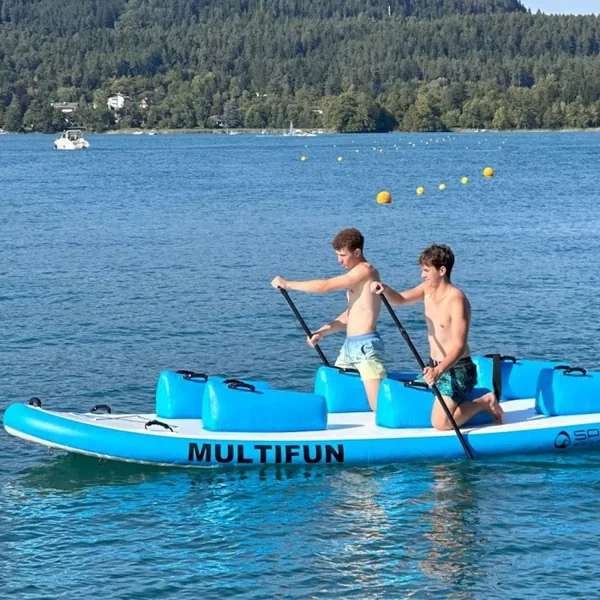 Le Spinera Professional Multifun 6 Mega est la solution idéale pour les opérateurs nautiques, les hôtels, les centres de loisirs ou les familles en quête d’activités aquatiques variées et inoubliables. Véritable concentré d’innovation, il combine traction, stand-up paddle géant, et plateforme flottante de détente pour offrir une expérience complète et polyvalente sur l’eau.