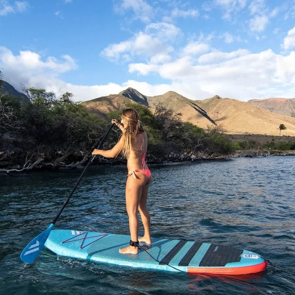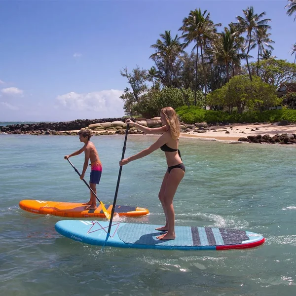 L’épaisseur de la board est également un critère important. Plus une planche est épaisse, plus elle sera plus rigide. Avec ses 11.5 cm d’épaisseur et ses 9.8 pieds de long, ce sup paddle vous permettra de naviguer plusieurs heures et permettra à n’importe quel gabarit jusqu’à 85 kg de se sentir à l’aise dessus.