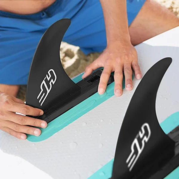 Les deux ailerons latéraux favorisent la stabilité latérale de la planche. Avec une bonne longueur, il donne à la planche la stabilité nécessaire pour se balader et garder son cap et un excellent niveau de maniabilité pour jouer dans les vagues.