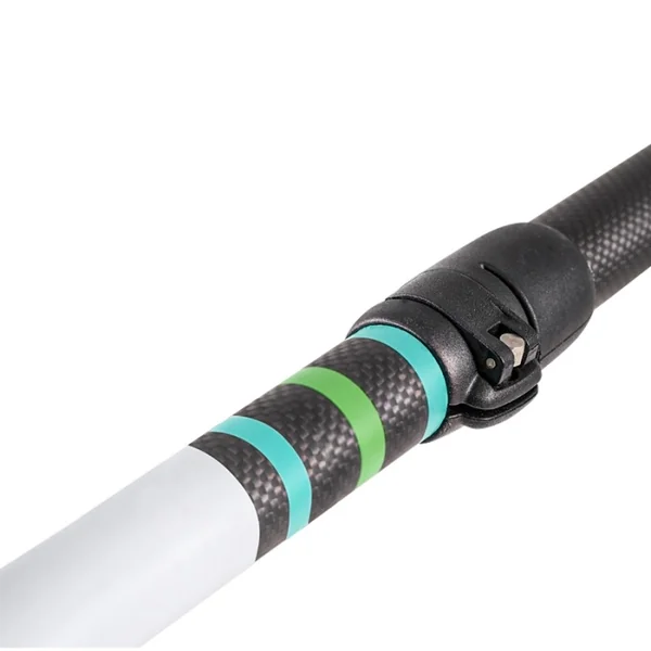 Son manche en carbone rigide et léger permet de pagayer sur de longues distances dans les meilleures conditions.