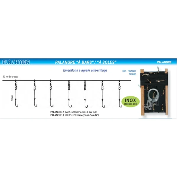 Palangre à Bars 50 m Palangre à Bars 50 m 20 hameçons à Bar 3/0