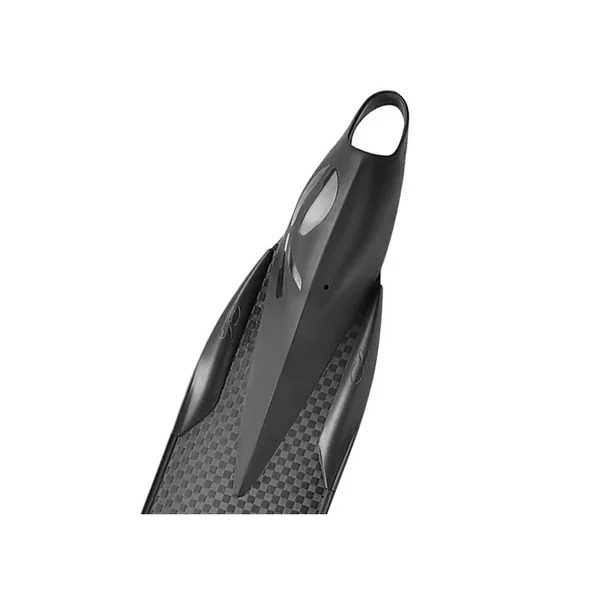 Nous avons inséré des stabilisateurs hydrodynamiques latéraux et des éléments internes dans la pointe du chausson pour contrer la poussée négative du carbone. Le résultat est une palme qui maintient assiette et flottabilité sans se déformer.