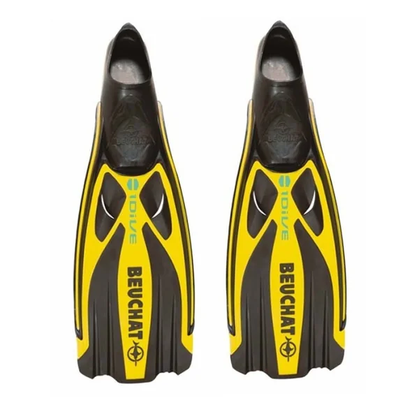 Palmes Beuchat 1Dive Jaune plongée – La palme de plongée sous-marine réglable 1Dive bi-matière est en Elastomère (chausson et partie souple de la voilure) et Technopolymère (voilure). Elle est prévue pour une utilisation en plongée, sa voilure souple et puissante à la fois et son chausson muni d’une sangle réglable adaptée aux bottillons avec un Fin Stopper.