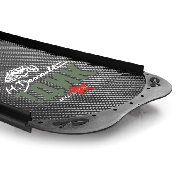 Quant à la composition, les voilures, mesurant 80 cm, bénéficient d’un revêtement surmoulé en caoutchouc thermique qui les intègre de manière intrinsèque à la structure en fibre de carbone.