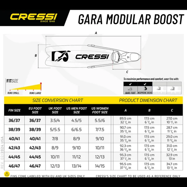 Palmes Cressi-sub Gara Modular Turbo Boost La Gara Turbo Boost, une évolution de la Impulse, une technologie révolutionnaire de déformation des ondes en forme de S.
