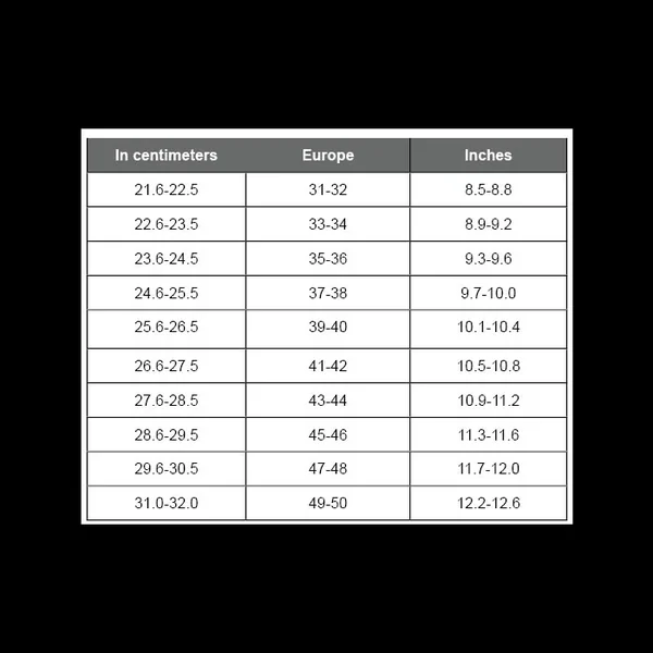 Veuillez choisir la taille suivante si vous avez l’intention de porter des chaussettes de 3 à 5 mm.
