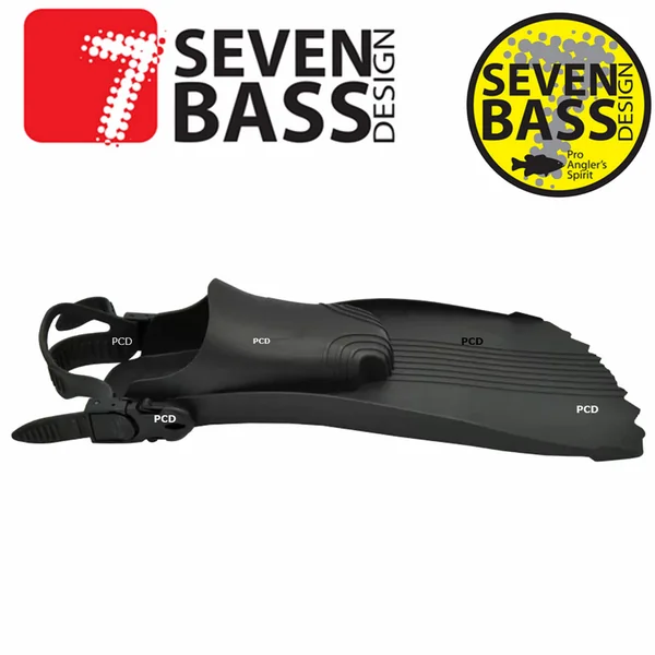 Palmes spéciales float tube, de marque Seven Bass, avec un angle entre pied et voilure, créant une poussée optimale, autant en montant qu’en descente.