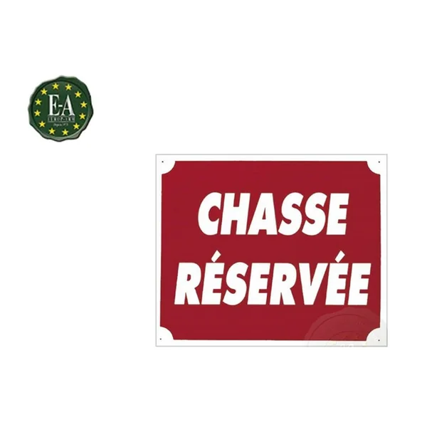 PANCARTE CHASSE RESERVEE : Caractéristiques : -Pancarte « Chasse réservée ». -Taille : 30 x 25cm. *Disponible en version Akylux ou Aluminium.