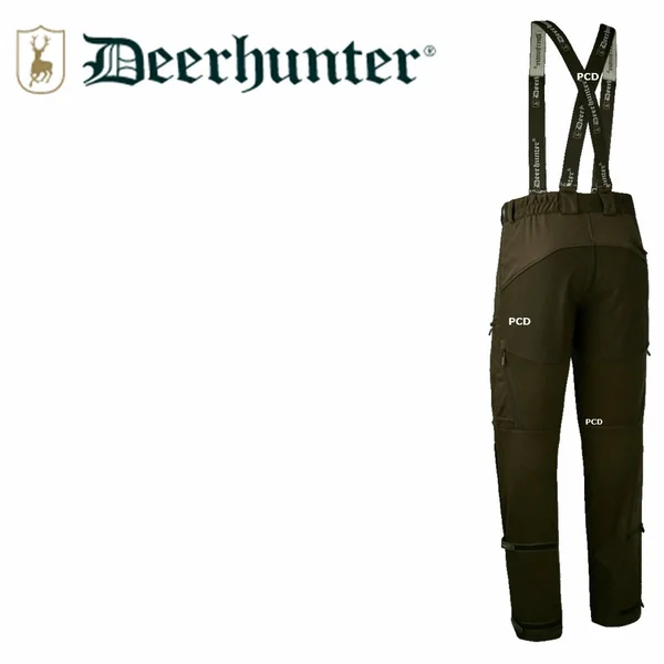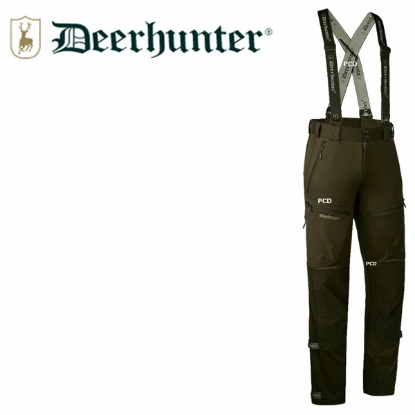 Le pantalon Excape Softshell, de marque Deerhunter, est doté d’une taille élastique et de bretelles amovibles, conçu pour une coupe confortable et sûre.