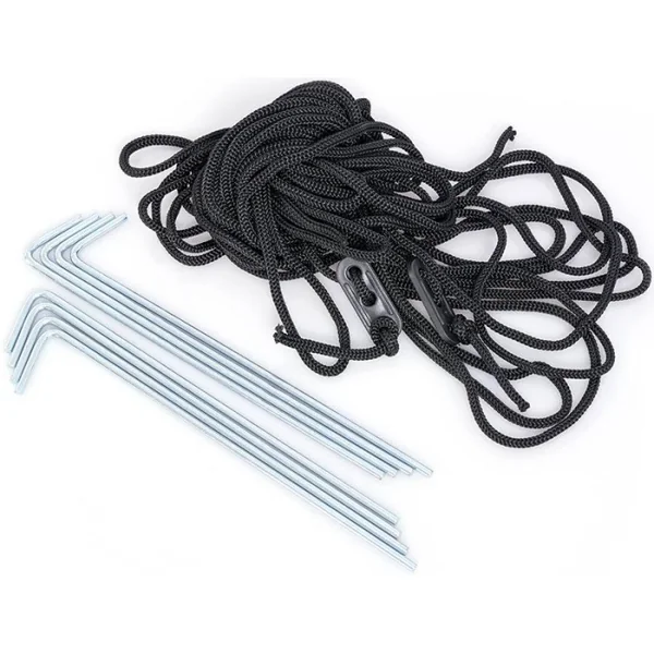 • Livré avec des chevilles pour sols durs ou en terre. Si nous voulons l’ancrer dans du sable mou, il est conseillé de fixer les vents avec un système de poids ou un autre type de chevilles en forme de “V” (non incluses).