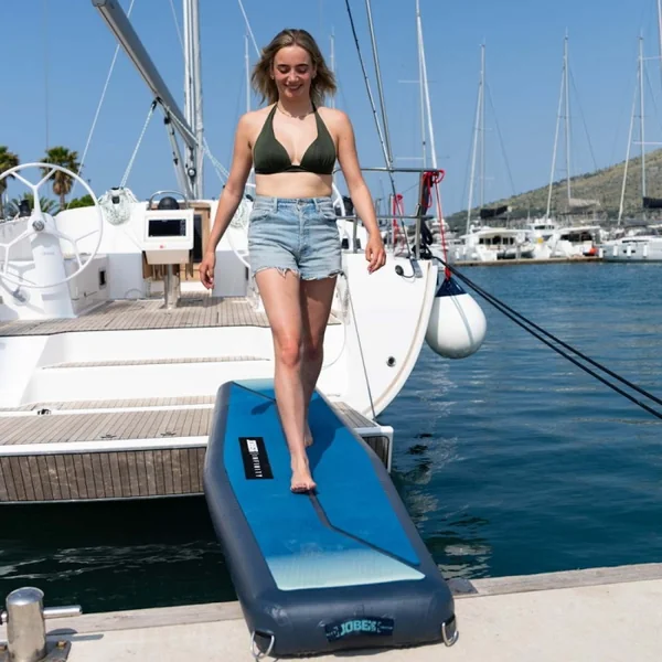 Passerelle gonflable Jobe Infinity 2.5 m Équipée d’une valve Halkey Roberts pour un gonflage rapide et sécurisé, la plateforme dispose également de deux poignées de transport facilitant sa manipulation.